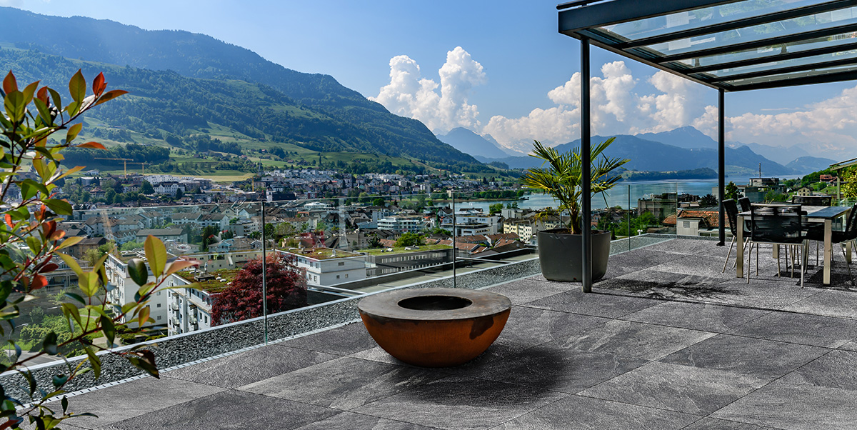 Porcea Stone is designed to replicate the look and feel of natural stone and concrete pavers, with all of the technical benefits of an outdoor porcelain tile.